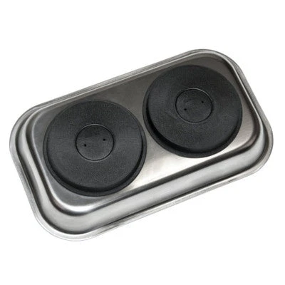 Ce bol à double emplacement retient les vis collectées et petits accessoires en métal grâce à sa base magnétique. Il mesure 40 mm de haut et fait 140 mm de large pour 240 mm de long.