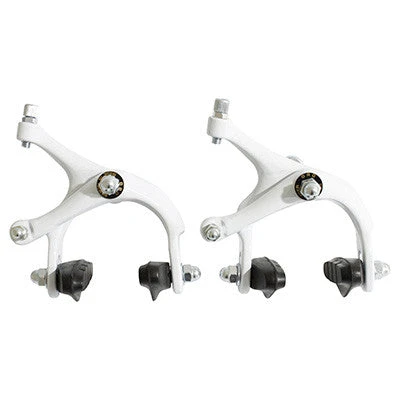 Les étriers de frein Caliper avant et arrière sont prévus pour s’installer sur des roues vélo 700C ou 28 pouces, présentes généralement sur des vélos de route, course ou fixie. Ils sont équipés chacun de deux patins de frein, moulés type Shimano 105, de 50 mm. La marge de règlage, entre l’axe de fixation et la jante, est de 43 à 51 mm. Le frein avant est fourni avec une tige de fixation de 50 mm de long ; le frein arrière, avec une tige de fixation de 30 mm. L’ensemble pèse 365 grammes.