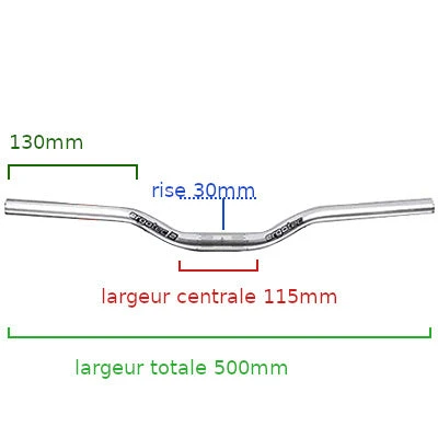Très léger, ce guidon vélo Ergotec-Humpert est constitué en aluminium et pèse à peine 238 grammes. Il mesure 500 mm de large et possède un réhaussement (rise) de 30 mm. Le diamètre en son centre est de 25,4 mm. Il se monte ainsi avec une potence pouvant accueillir ce même diamètre comme la plongeur plongeur argent inclinable ou la potence aheadset vélo réglable.