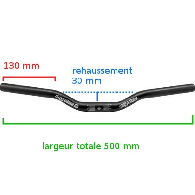 Fabriqué en aluminium, le cintre de vélo Ergotec est léger et pèse seulement 238 grammes. Il résiste à la corrosion. Avec une largeur de 500 mm, le guidon est relevé avec un rise (réhaussement) de 30 mm. Le diamètre au centre du cintre est de 25.4 mm. Le guidon se monte sur des potences de même diamètre telles que :