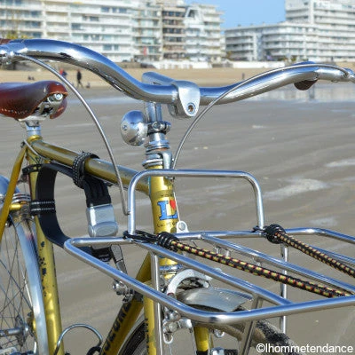 En acier inoxydable, le câble et la gaine de frein sont robustes et résistants à la rouille. La forme de la gaine (voir photo 2) ressemble à celle qu’on pouvait retrouver sur les anciens vélos. Les protections incluses dans le kit se placent autour de la gaine en acier afin que celle-ci n’abîme pas la peinture du cycle.