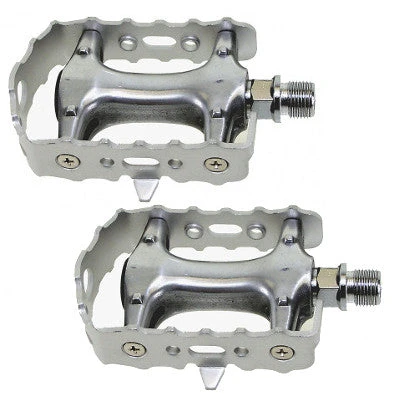 Cette paire de pédales au joli look vintage, de couleur argent, est compatible avec des cale pieds argent assortis qui viendront améliorer la puissance de pédalage en complétant le look rétro de votre vélo. Vous pouvez aussi ajouter des courroies de cale pieds pour une meilleure tenue sur la pédale.