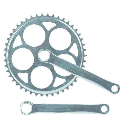 Pour donner une touche vintage à votre vélo ou restaurer votre ancien vélo ce pédalier est idéal. En effet ce dernier se monte à l’aide de clavettes, système utilisé sur les vieux vélos. Ce pédalier ne comprend qu’un plateau de 46 dents. Ce pédalier de vélo monovitesse est livré avec ses deux manivelles de 170 mm. L’ensemble du set est composé en acier.