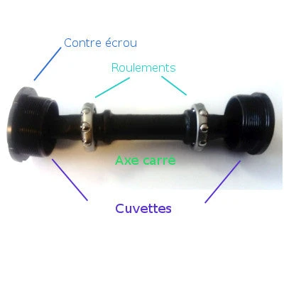 Si l’axe de boitier de pédalier carré est abîmé suite aux frottements répétés des billes, il est aussi préconisé de le changer. Il est facile de s’en rendre compte en tournant l’axe: si l’axe présente des points d’accroche et que la rotation du pédalier est moins fluide, il faut alors changer l’axe et les billes. Il est également possible d’ajuster le boitier de pédalier en ajoutant une entretoise de calage.