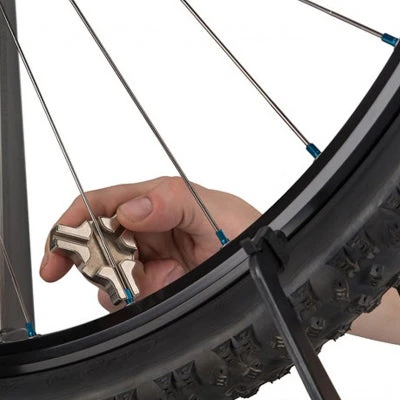 Utilisez cette clé à rayon avec un pied de centrage Parktool TS-8 et l’outil d’alignement de roues vélo pour dévoiler facilement votre roue de vélo.