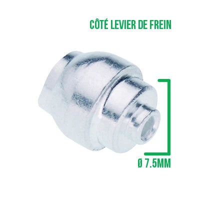 Cette butée s’installe au niveau du levier de frein. Elle permet de finaliser le montage sur des leviers qui sont parfois dépourvus de système de blocage pour gaine. Cette butée permet de bloquer une gaine de 5 mm de diamètre tout en laissant passer le câble de frein.
