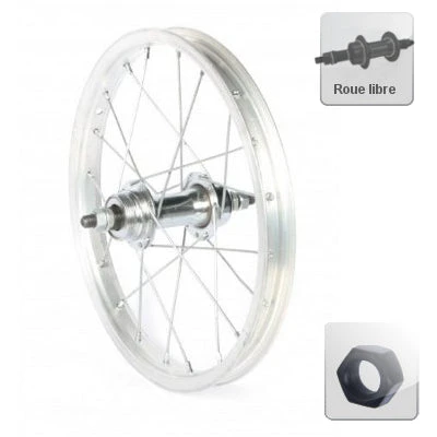 Changez la roue du vélo de votre enfant par cette roue arrière 16 pouces argent avec une jante large de 21 mm. Un moyeu 20 Trous, un axe avec boulons et des rayons équipent cette roue montée 16 pouces. Un filetage est réservé à une roue libre en ce qui concerne la transmission.