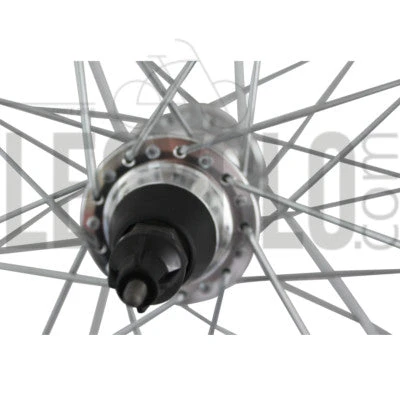 Le moyeu de 32 trous de la marque Formula est livré avec un système d’attache rapide. Ce système pratique permet de démonter la roue sans outils. Le montage des rayons croisés assure un plus haut niveau de résistance. Le poids total de la roue est de 1140 grammes en comptant le serrage rapide. Le moyeu est équipé d’un filetage permettant l’installation d’une roue libre à visser. Les roues libres compatibles avec cette roue sont les suivantes :