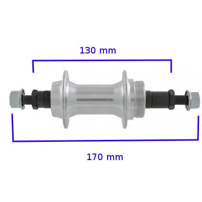 L’axe plein à écrous qui équipe la roue a un entraxe de 130 mm. Et la roue arrière a un moyeu qui accueille une roue libre de 5 à 7 vitesses. Les roues libres compatibles sont les suivantes :