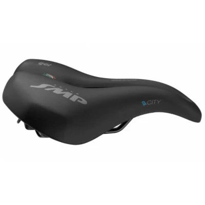 Issue de la gamme E-BIKE Concept, la selle vélo SMP E-CITY est une selle spécialement conçue pour le vélo de ville sur VAE. À la fois confortable et ergonomique, cette selle vélo en gel convient tout particulièrement pour les trajets courts du quotidien. Autant adaptée à la morphologie masculine que féminine, elle mesure 259 x 223 mm (longueur x largeur) et s’adapte à un ou une cycliste à la largeur d’ischions comprise entre 9 et 15 cm (soit du XS à XXL en taille de pantalon, d’après Selle SMP). Voici les éléments de confort de cette selle unisexe :