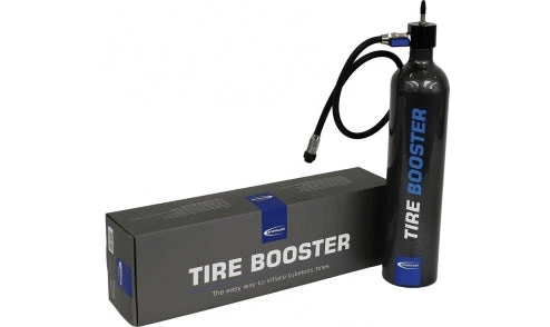 Le Tire Booster de Schwalbe est une bonbonne à fixer entre la pompe à pied et le pneu tubeless pour assurer son montage facile, sans compresseur et sans électricité. Le Tire Booster est un accessoire indispensable pour installer des pneus vélo tubeless en remplaçant efficacement un compresseur à air. Léger, à 435 grammes, et compact, avec 45 cm de long, le Tire Booster s’apporte facilement avec vous au début des pistes pour une réparation avant de partir sur les sentiers gravel ou VTT. Sa petite taille n’encombrera pas non plus votre espace de rangement vélo.